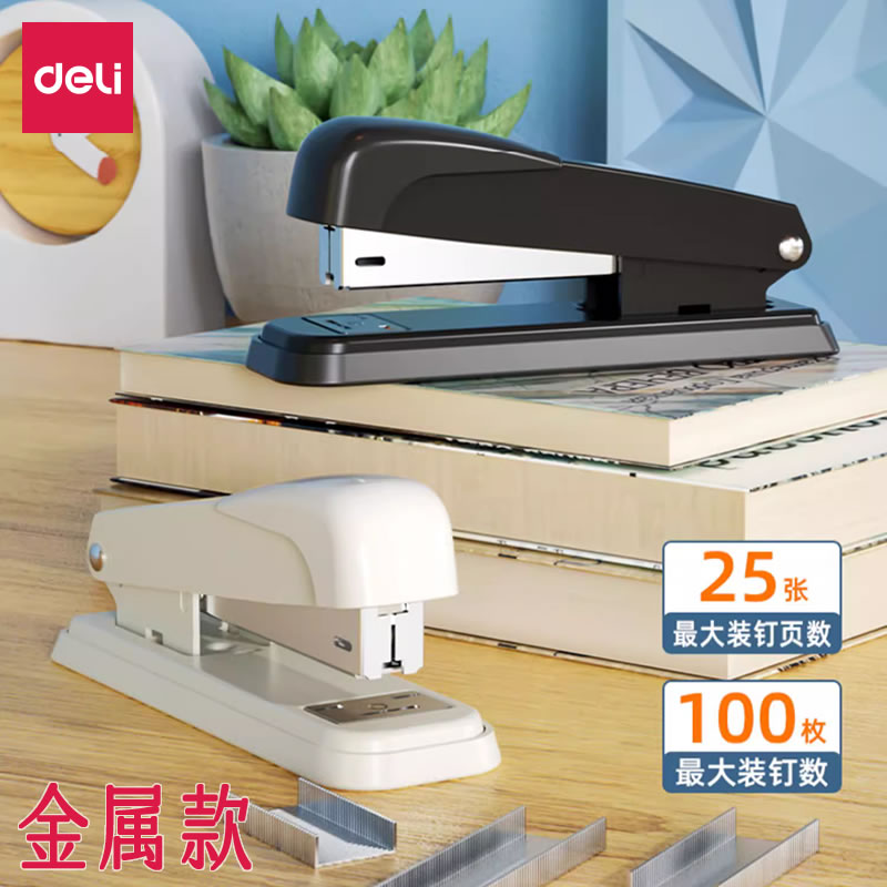 得力12号通用订书机24 6标准型统一商务办公用黑色蓝色白色大号50页金属订书器家用学生用迷你小号钉书机文具