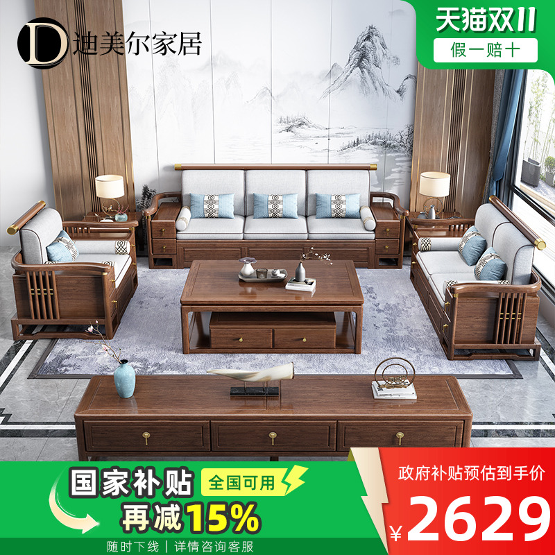 政府补贴实木沙发贵妃新中式 全套简约木质家具 胡桃木现代客厅中式