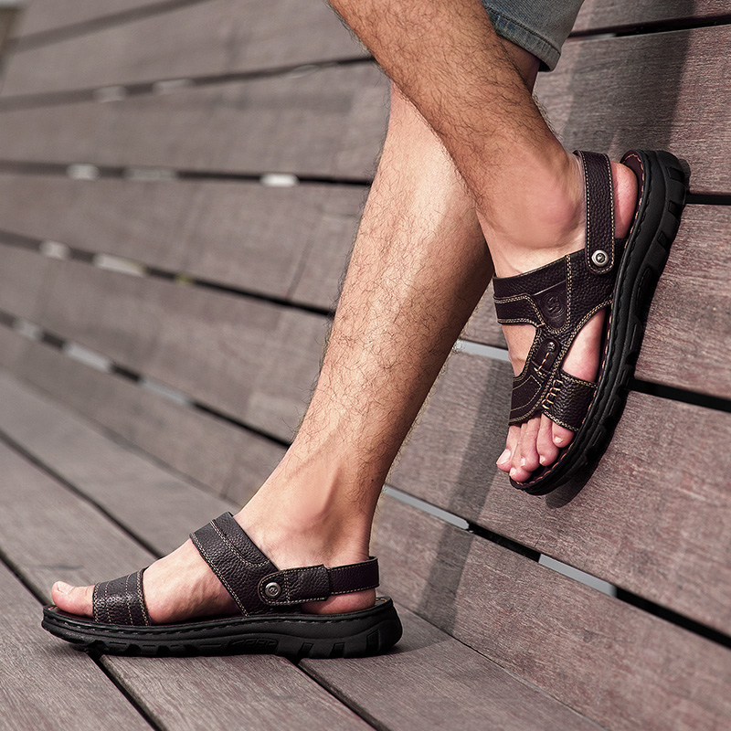 男款 外穿防滑耐磨两用凉拖鞋 2025新款 夏季 开车 真皮厚底沙滩鞋 凉鞋