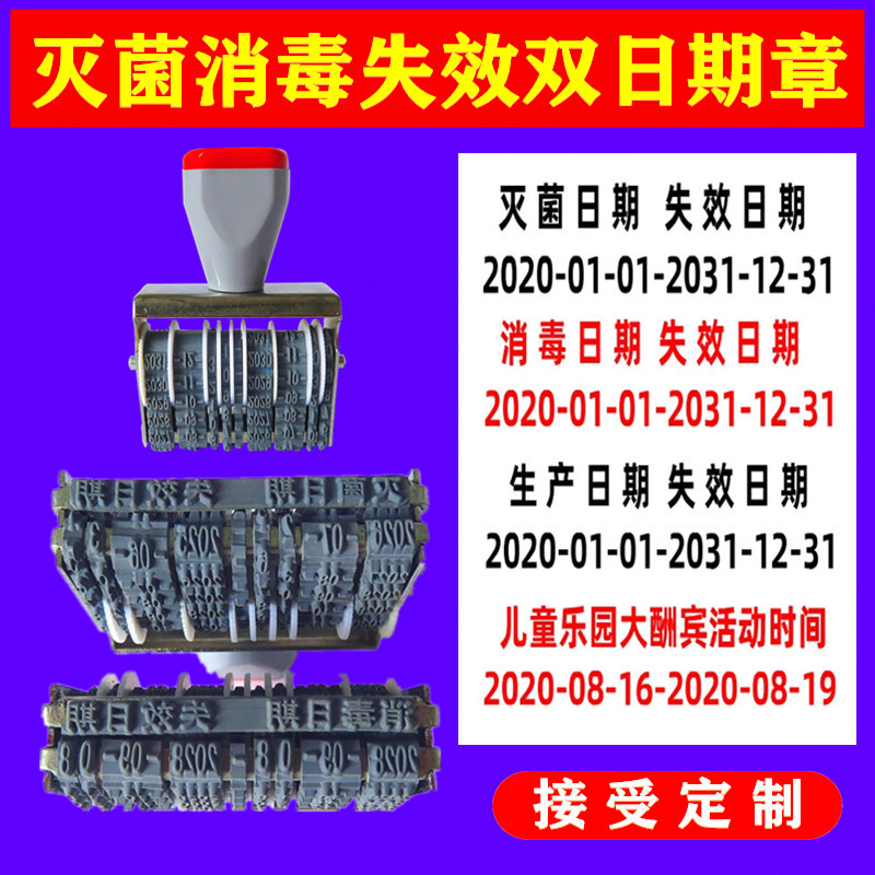 口腔牙科灭菌失效消毒双排日期印章有效期至启用截止生产失效转轮日期章诊所医疗器械消毒袋锅次盖章
