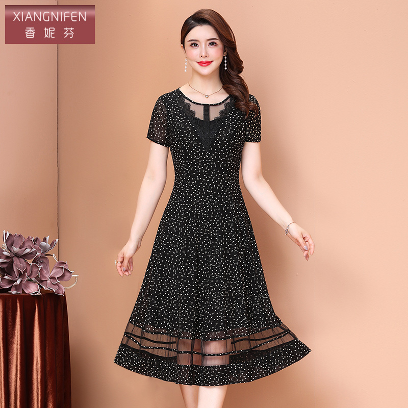 香妮芬贵夫人妈妈连衣裙女2025新款 气质高贵台湾纱中年显瘦裙子