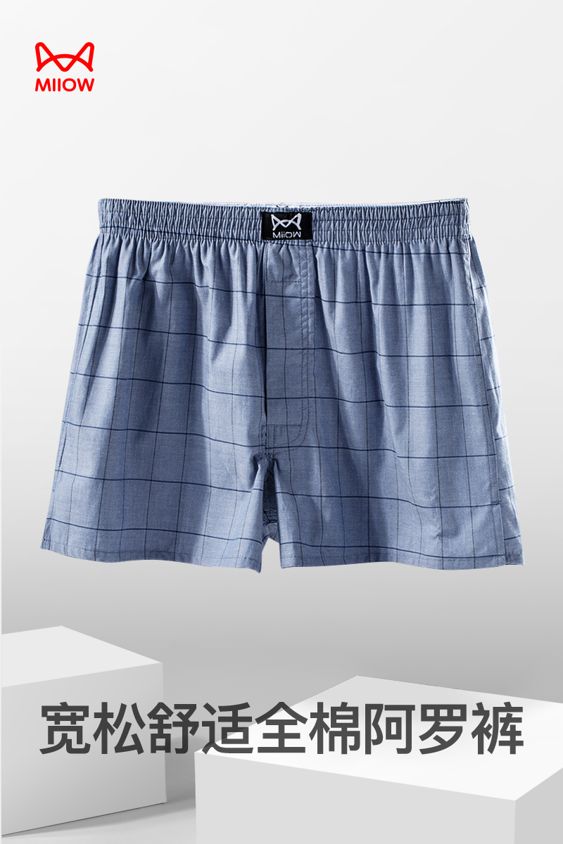 阿罗裤 纯棉全棉宽松版 平角裤 大码 猫人男士 舒适透气居家四角裤 内裤