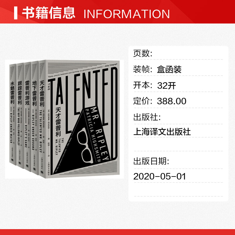译 全5册 赵挺 雷普利全集 外国小说文学 上海译文出版 帕特里夏·海史密斯 图书籍 美 社 著 新华书店正版 等