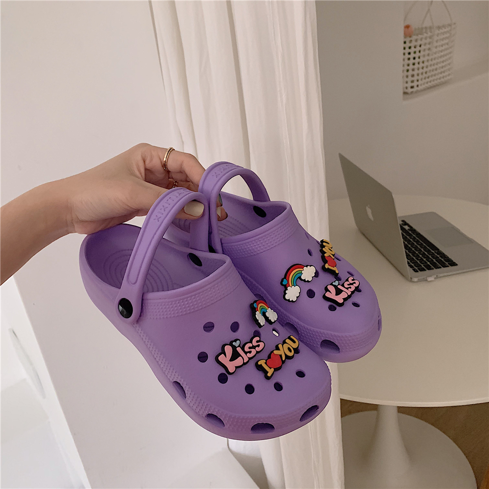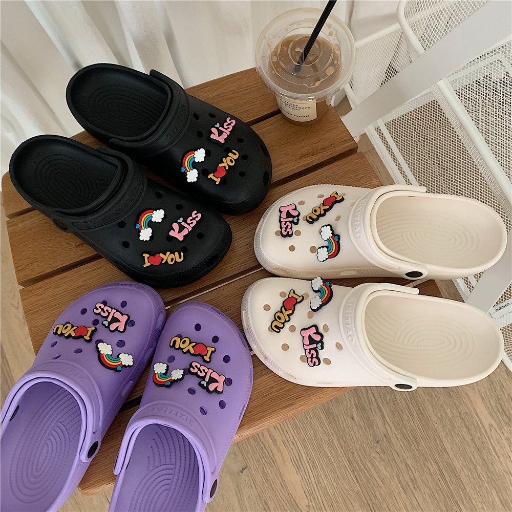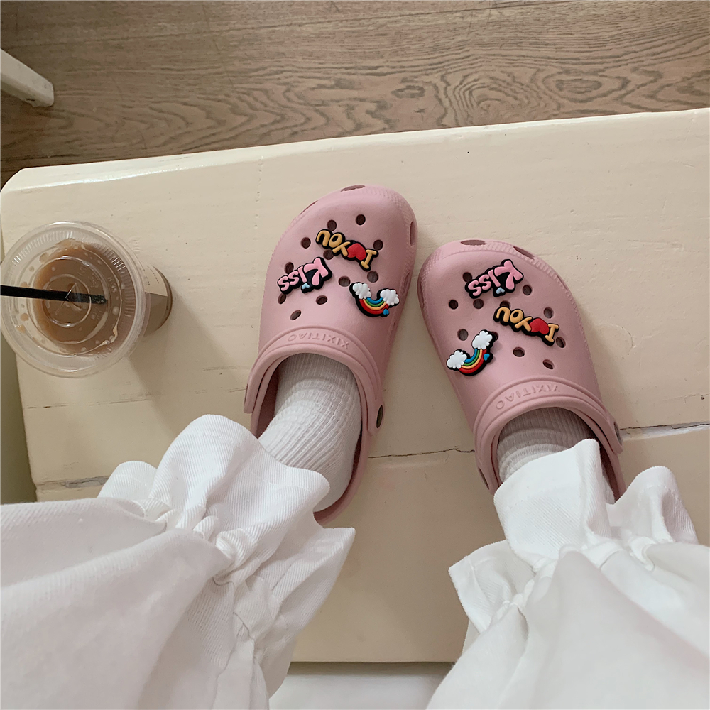 外穿沙滩防滑防臭EVA可爱家居包头拖鞋 chedoir鸳鸯苹果洞洞鞋 女款