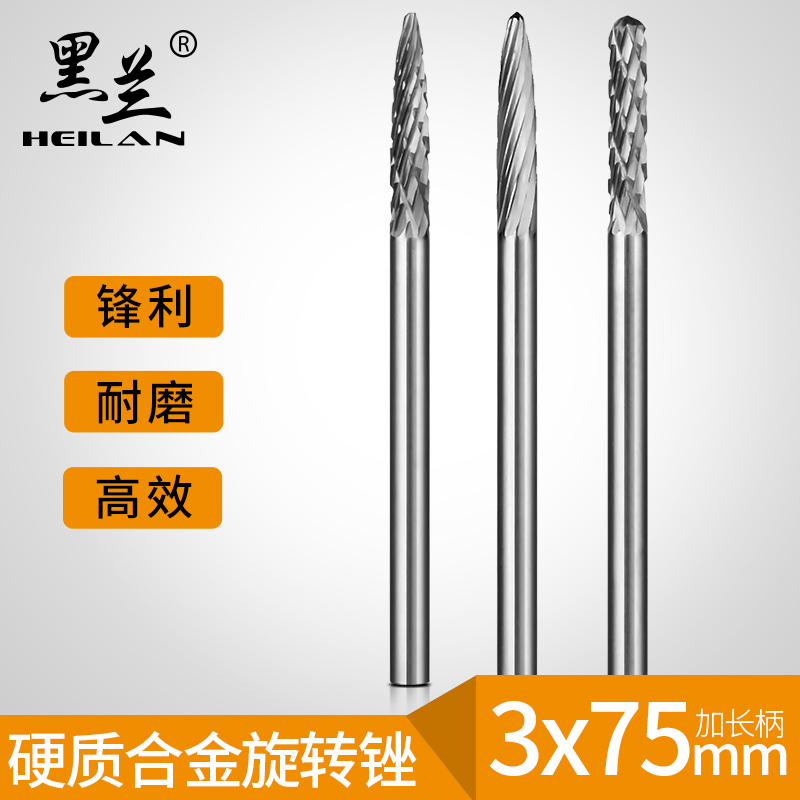 加长柄硬质合金旋转锉打磨头钨钢合金铣刀金属木工雕刻扩孔3mm柄