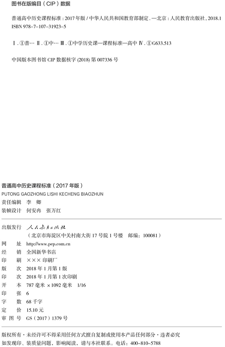 社 普通高中历史课程标准 人民教育出版 中华人民共和国教育部制定 大视野RJ 2017年版