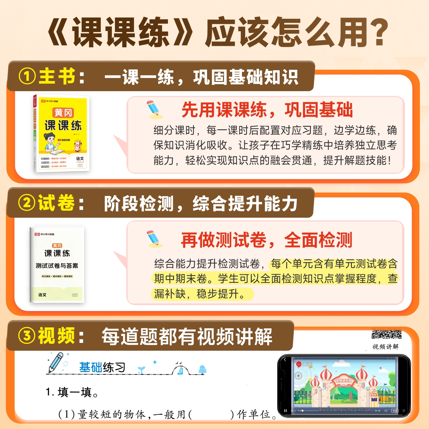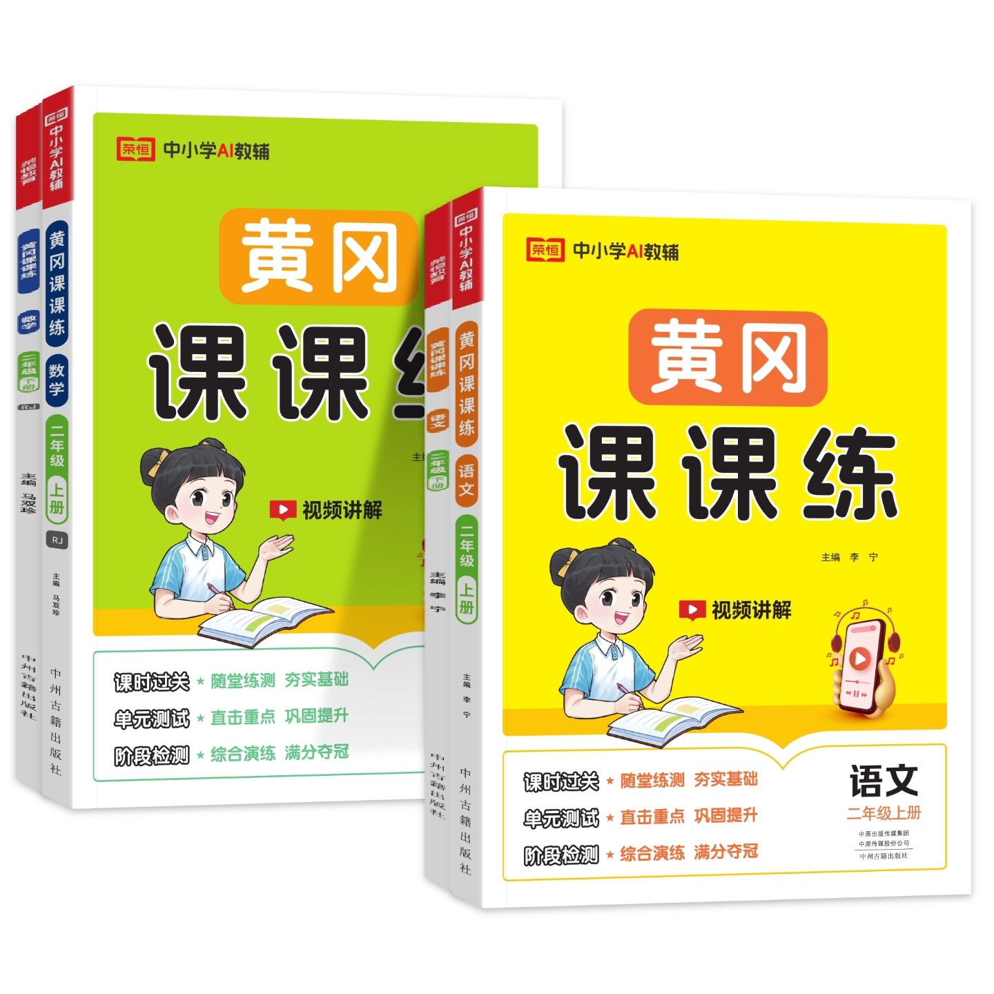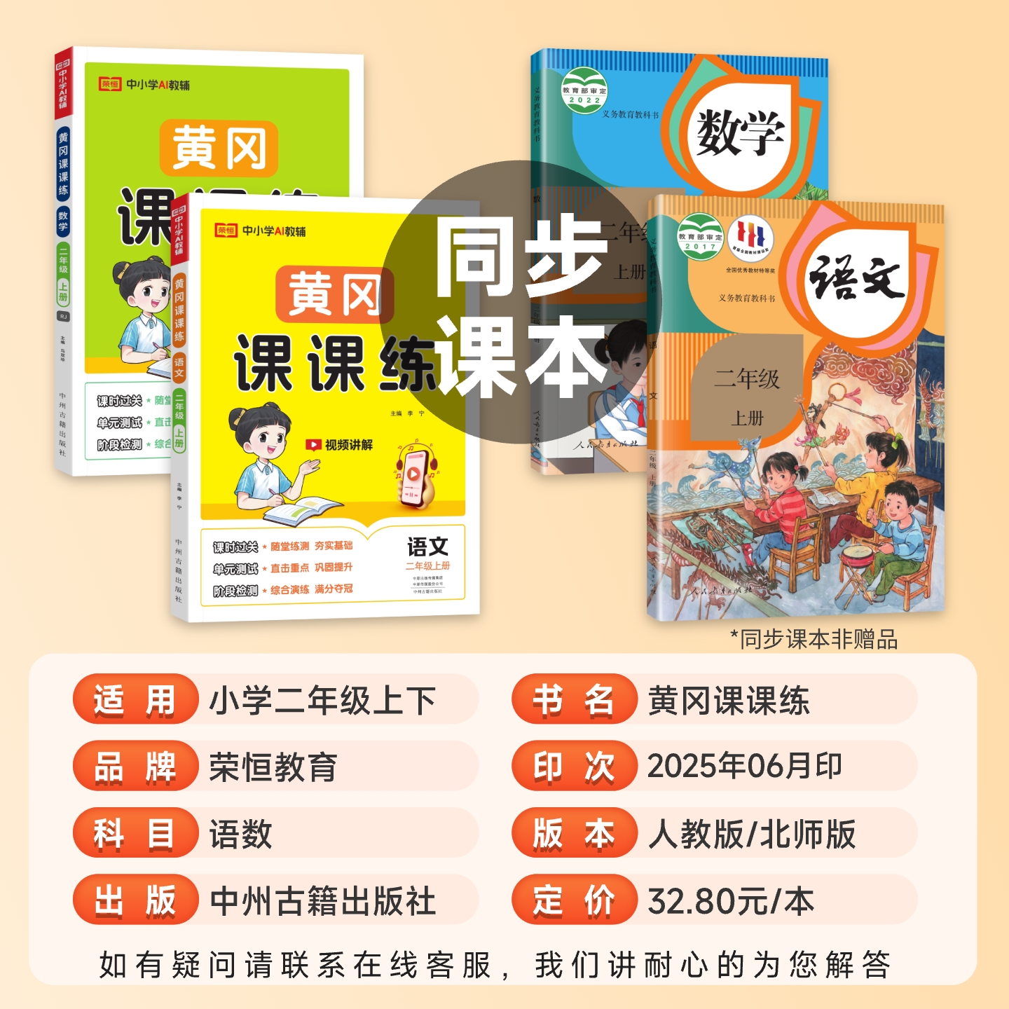 小学二年级上下册语文数学书试卷同步训练练习册 北师版 黄冈课课练语文数学全套2本 内附单元 一课一练二年级 2025新版 测试卷 人教