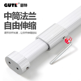 固特可调节伸缩杆不锈钢挂衣杆加厚衣架杆晾衣杆衣柜固定杆法兰座