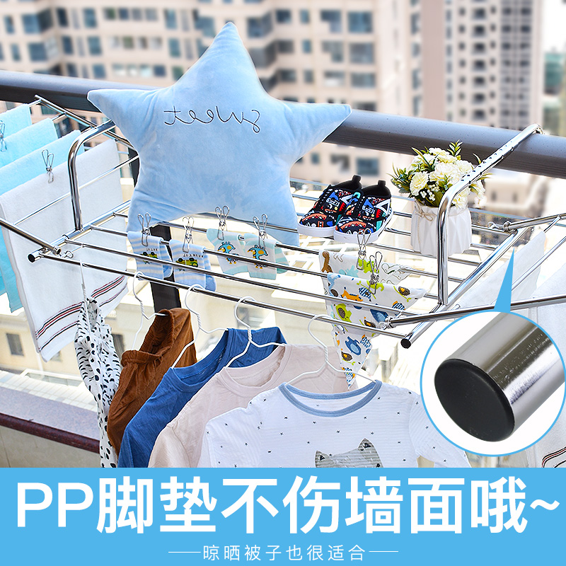 阳台护栏不锈钢晾晒架窗外高层晒被子防盗网挂钩神器防风晾衣架