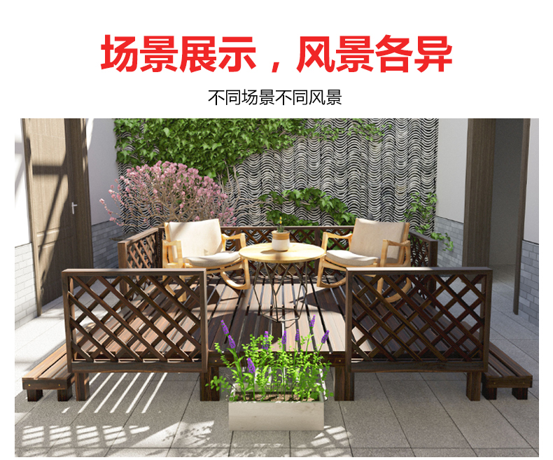 阳台防腐木地板户外露天地面铺设实木拼接防水防晒卡扣式 自铺改造