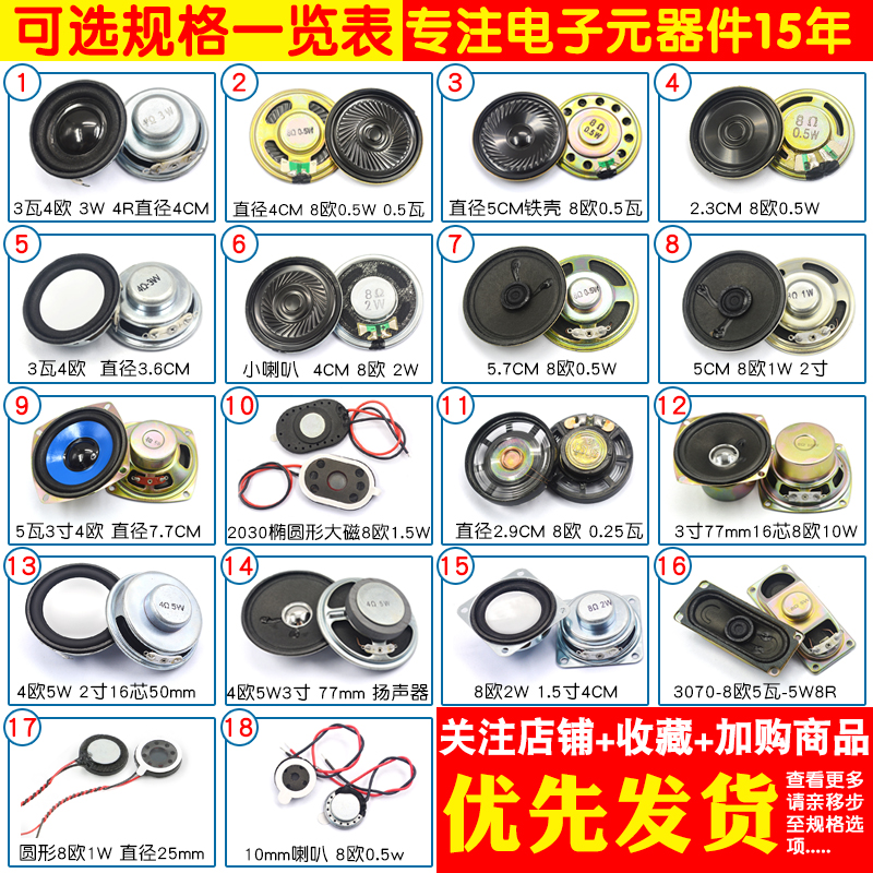 小喇叭扬声器4寸1.5寸2寸2.5寸3寸5W10W瓦8欧音箱音响配件全频diy