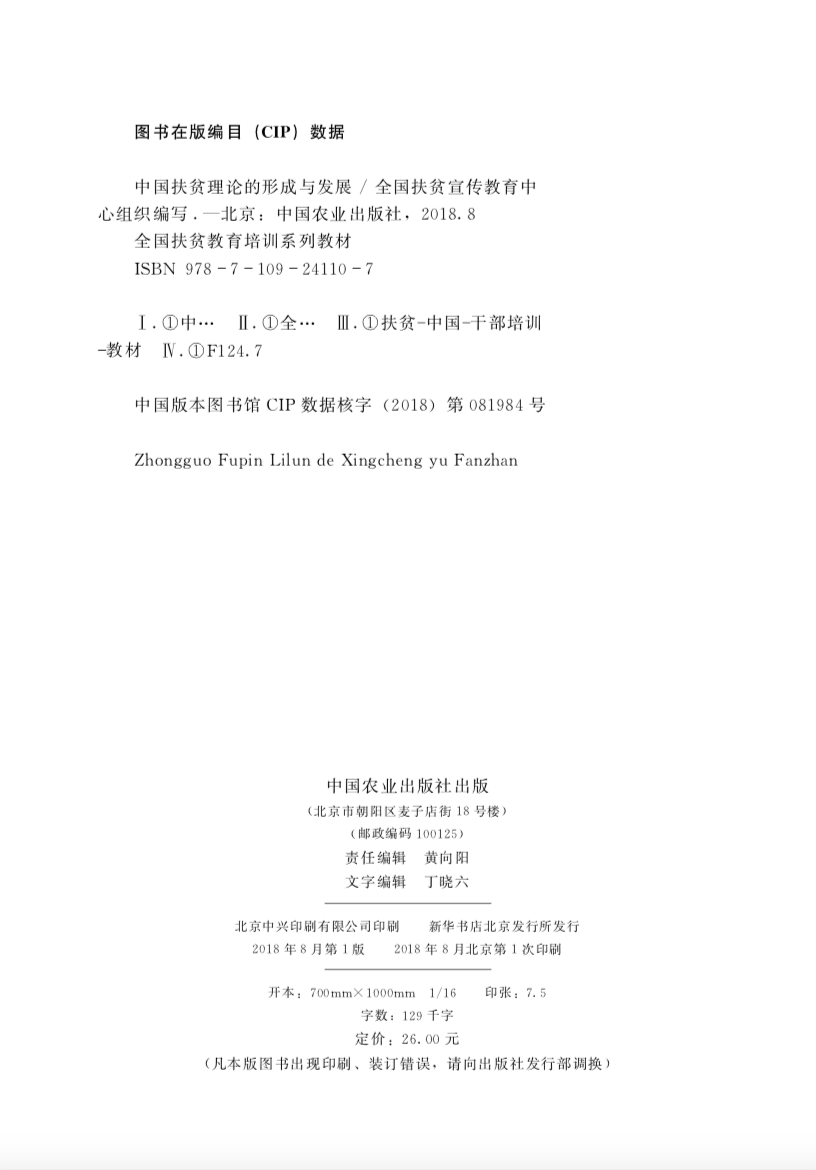 形成与发展 中国扶贫理论 扶贫教育培训教材 扶贫宣传教育中心组织编写 社 正版 中国农业出版 包邮