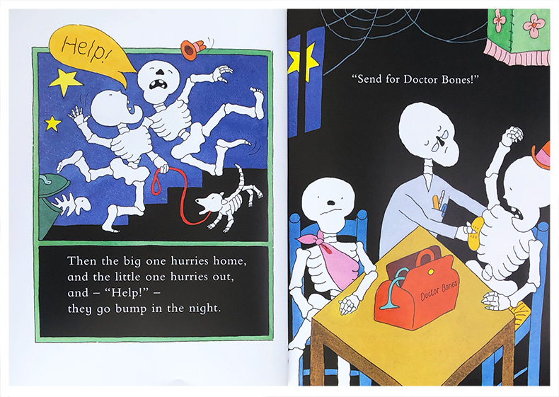 廖彩杏推荐 6岁句型易懂儿童启蒙图画趣味故事书 Bumps 亲子阅读绘本2 骨头系列 可爱 Night the Funnybones 英文原版