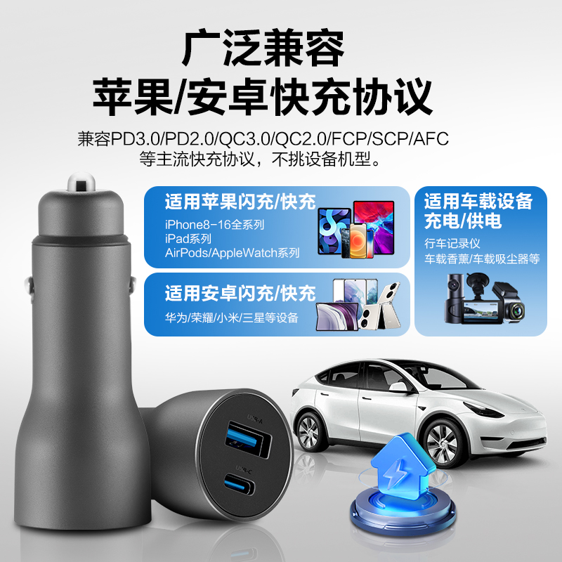 公牛车载充电器汽车点烟转换插头一拖二usb苹果快充接口手机车充