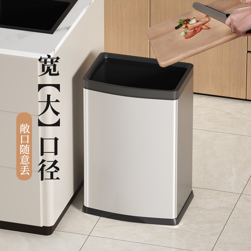 无盖高档垃圾桶大号不锈钢家用客厅卧室卫生间厨房北欧大容量方形