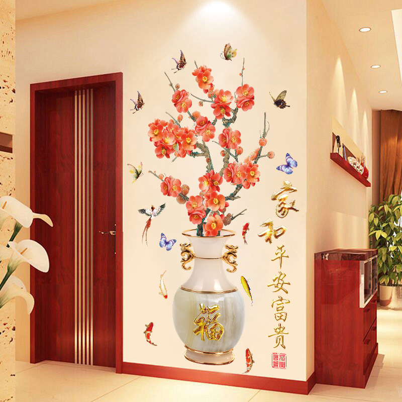 3d立体荷花墙贴画客厅背景墙壁纸自粘装 饰卧室墙面中国风文字贴纸