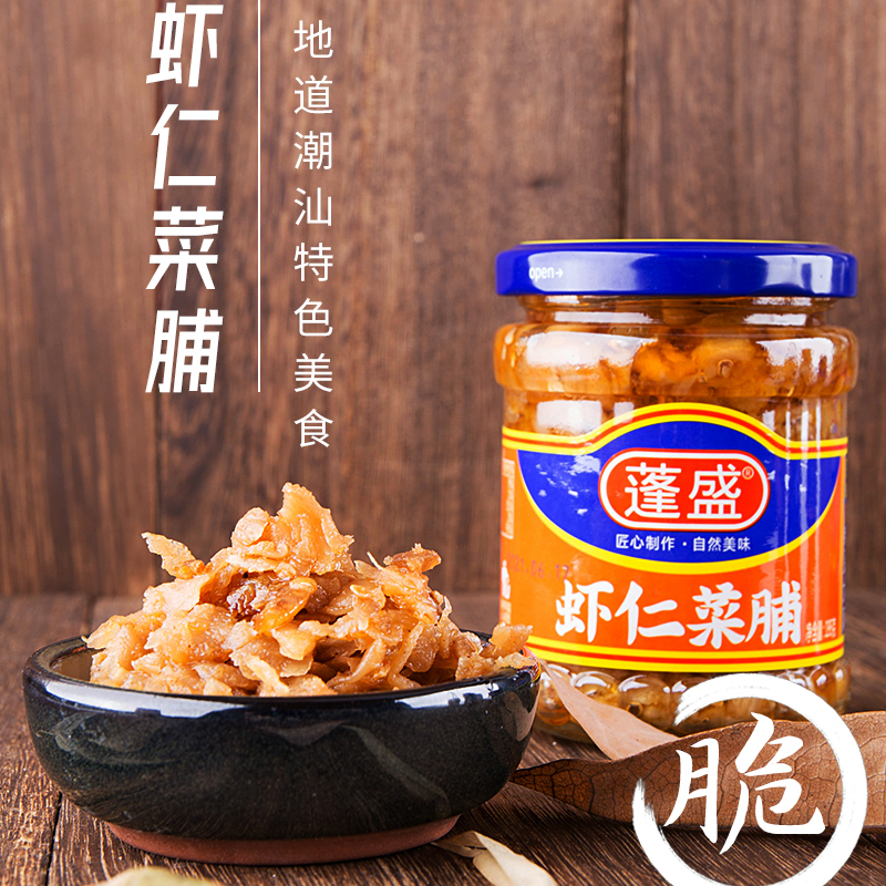 潮汕特产酱菜蓬盛虾仁菜脯195g瓶装 佐粥 开胃下饭菜榨菜咸菜