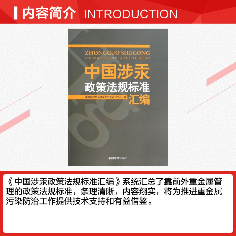 环境保护部环境保护对外合作中心 著作 编者 环境科学专业科技 图书籍 中国涉汞政策法规标准汇编 新华书店正版 无