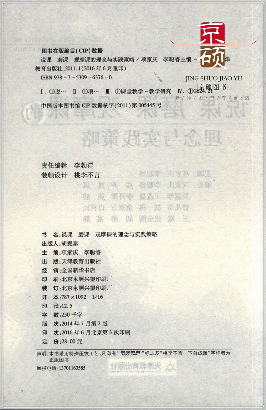 说课磨课观摩课 社 理念与实践策略 天津教育出版 9787530963760 项家庆