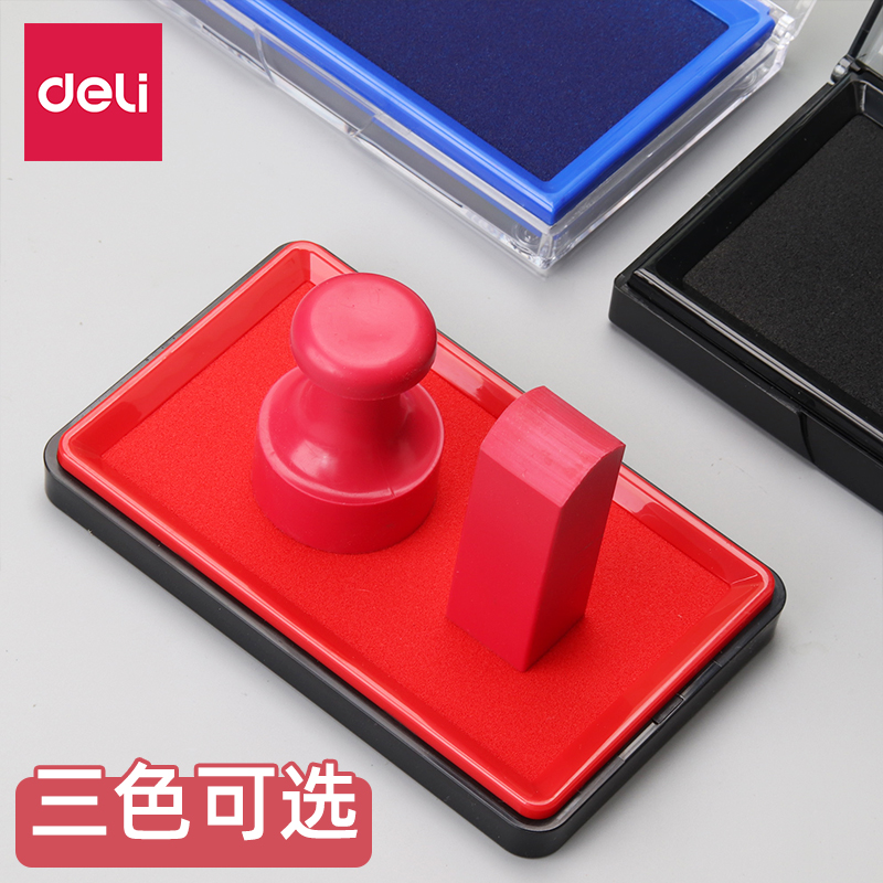 得力印台9864红色印台大号印泥盒油性印油快干速干财务会计专用速干蓝色印油黑色印章银行按手印指纹办公用品