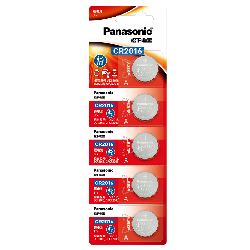 松下CR2016纽扣电池3V锂电子钮扣适用于铁将军摩托电动车汽车遥控器通用卡西欧dw圆形电池体重秤电池