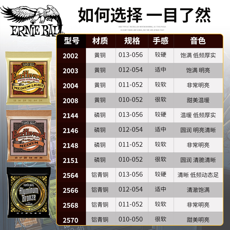Ball 2566民谣木吉他弦 2146 2004 磷黄铜EB琴弦 2003 美产Ernie