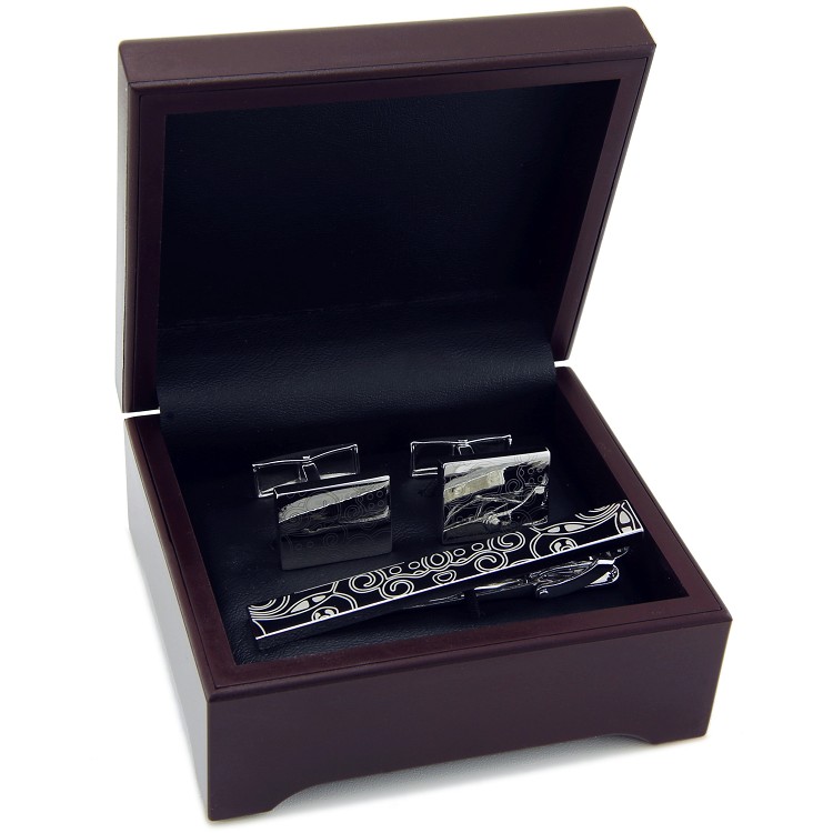 男式 枪黑色领带夹激光雕花镜面领夹领针男士 复古祥云花纹 斯巴达