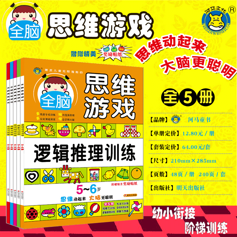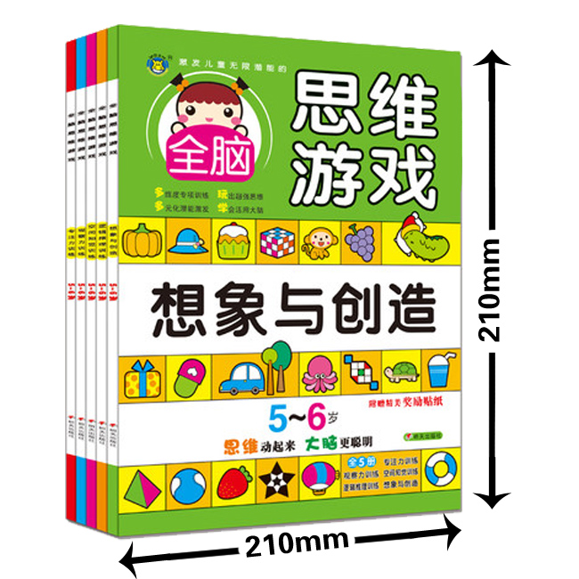 6岁儿童图书 宝宝玩转思维游戏训练书大班升一年级早教启蒙专注力训练游戏逻辑思维左右脑开发想象与创造3 全脑思维游戏5 6岁全5册