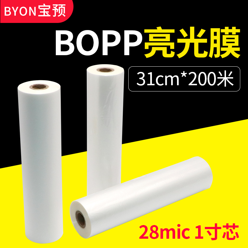宝预1寸芯bopp预涂膜名片卷膜覆膜机热裱膜310mm 200m亮膜28MIC相册图文预涂膜过胶膜热覆膜高光透明亮膜光膜