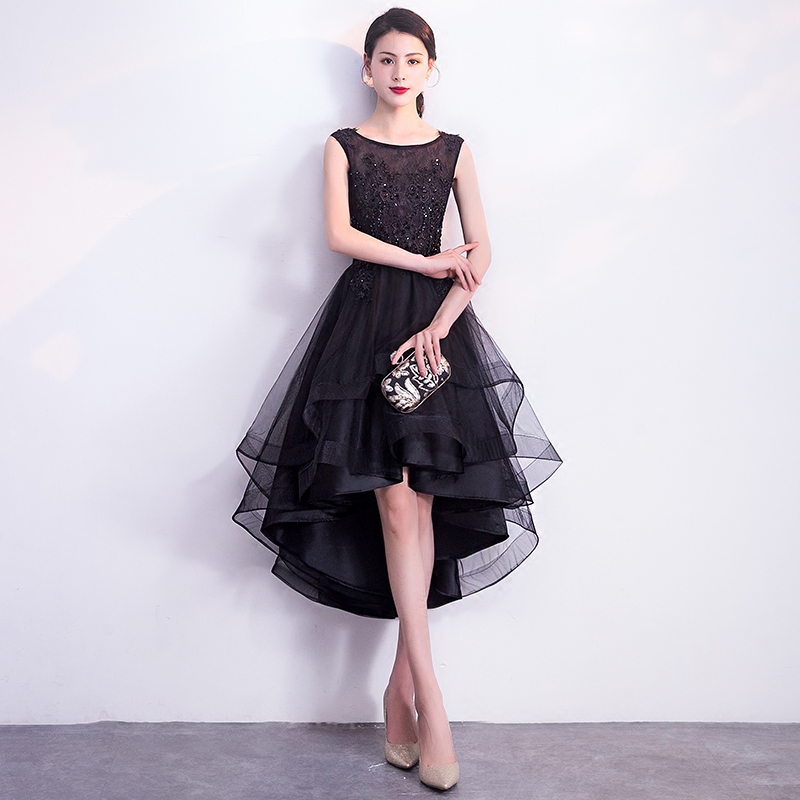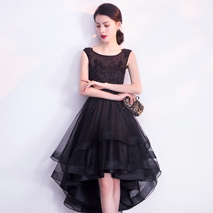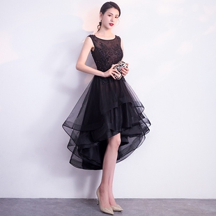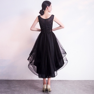 黑色晚礼服女宴会高贵气质名媛前短后长学生毕业派对小礼服连衣裙