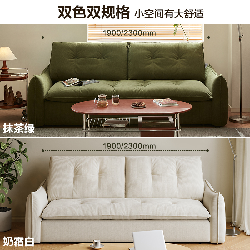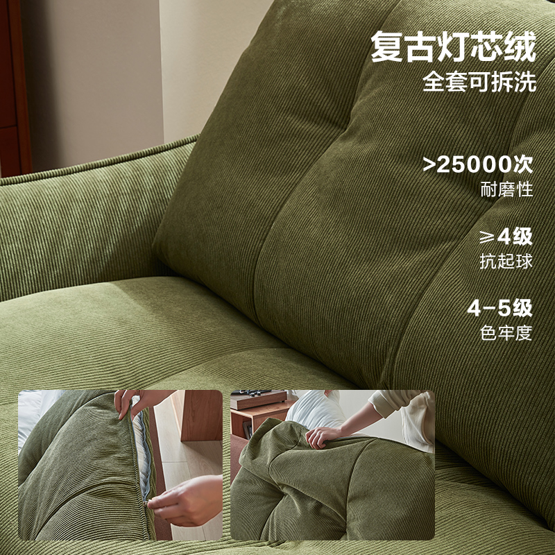 全友家居2025新款 复古风双人布艺沙发卧室小户型折叠两用沙发床