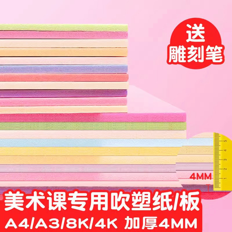 材料板画专用工具板8k4k16k白色美术DIY板画4mm厚彩色8开全开小学生高密度版 A4吹塑纸吹塑板a3儿童版 画套装