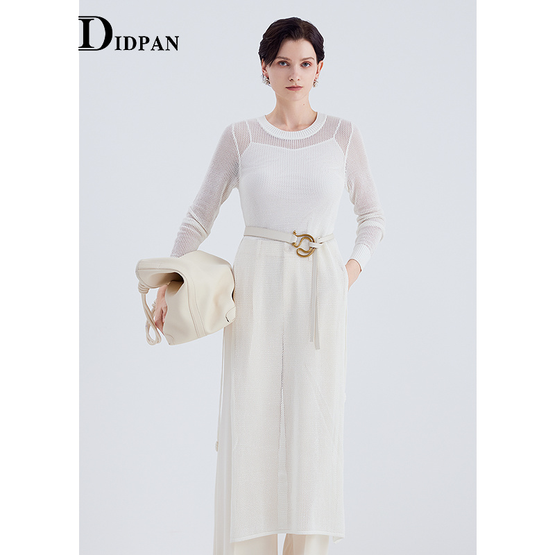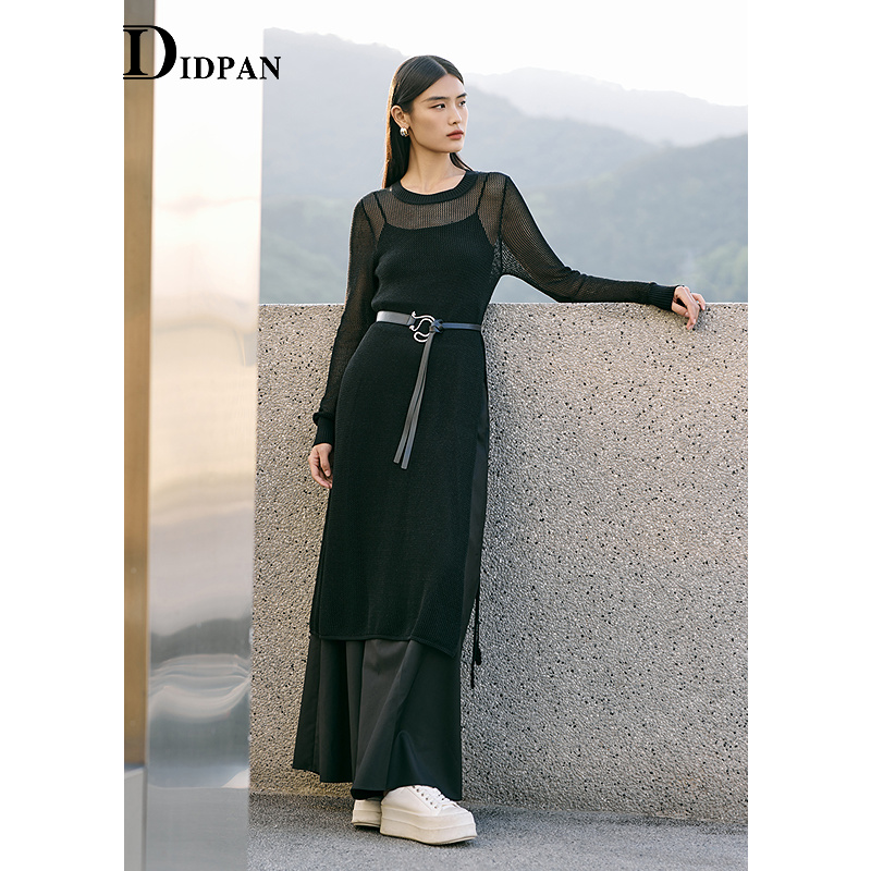 两件套上衣女修身 IDPAN镂空肌理感针织衫 长款 简约长袖 显瘦 新款