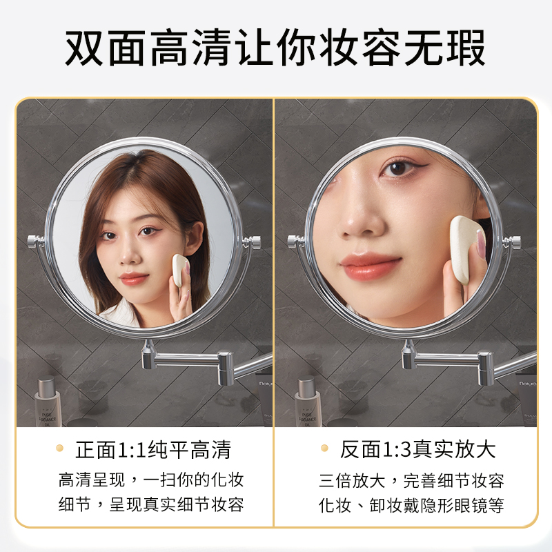 尔沫免打孔化妆镜浴室壁挂上墙美容镜伸缩折叠卫生间镜子不锈钢