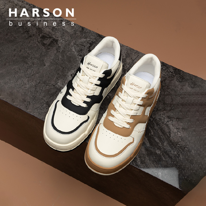 男士 潮鞋 时尚 哈森男鞋 男款 真皮复古休闲板鞋 百搭运动鞋 厚底小白鞋