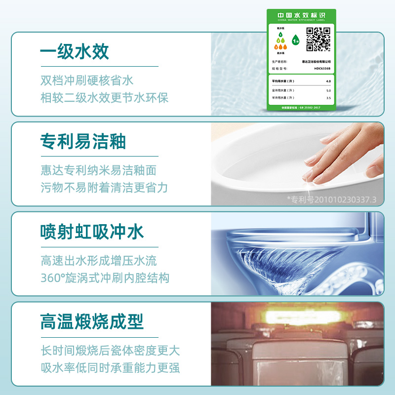 惠达家用卫生间一体式 强劲大冲力节水防臭坐便器6336 马桶虹吸式