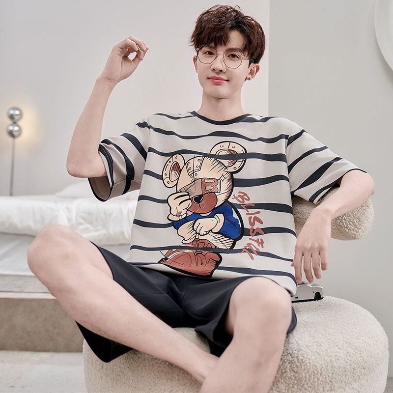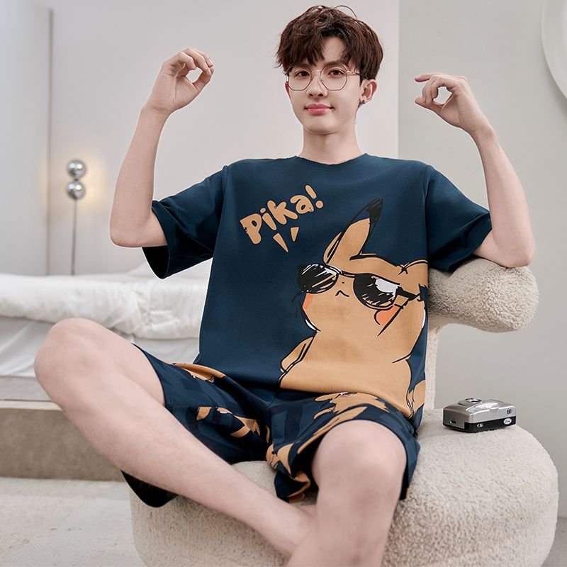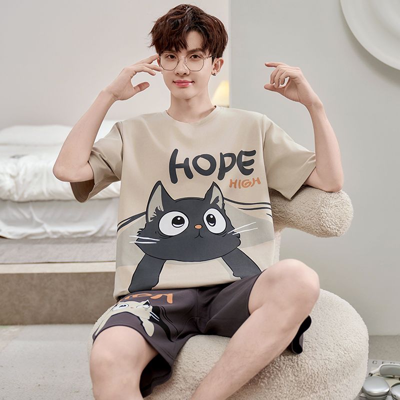 薄款 宽松加大码 2025新款 套装 可外穿家居服 短袖 猫人纯棉睡衣男夏季