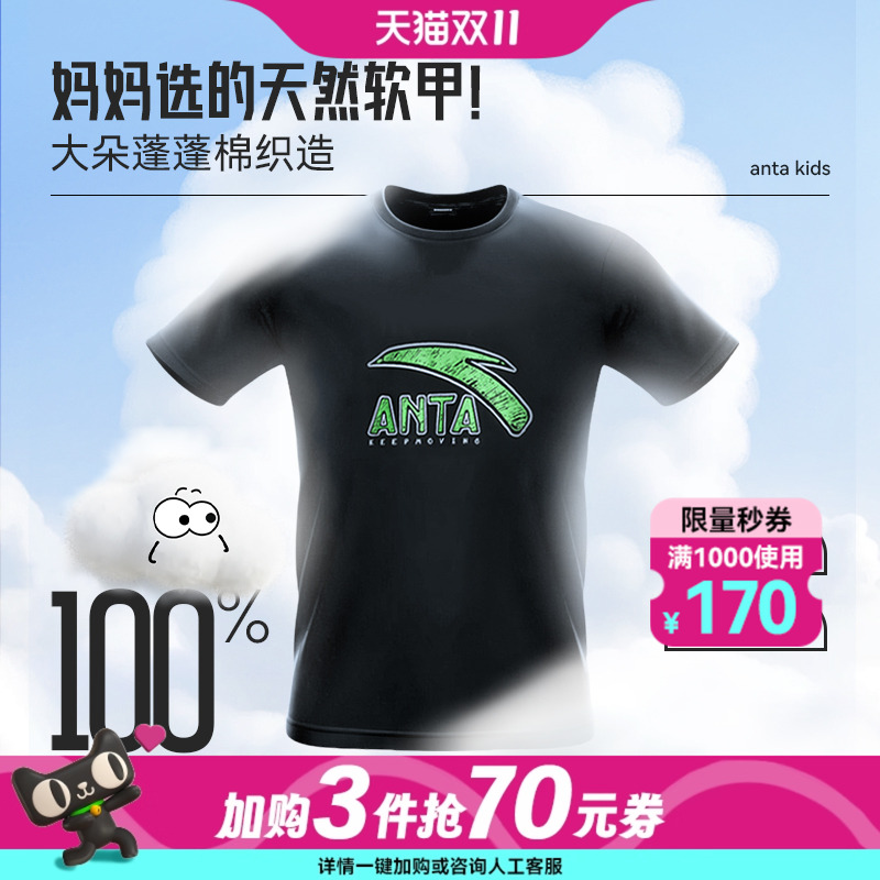 舒适透气中大童纯棉运动短袖 安踏儿童男童针织短袖 款 2025年夏季 衫