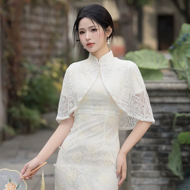 开衫 艳莲新款 蕾丝披肩罩衫 薄款 外套披风外搭 旗袍披肩外搭女夏季