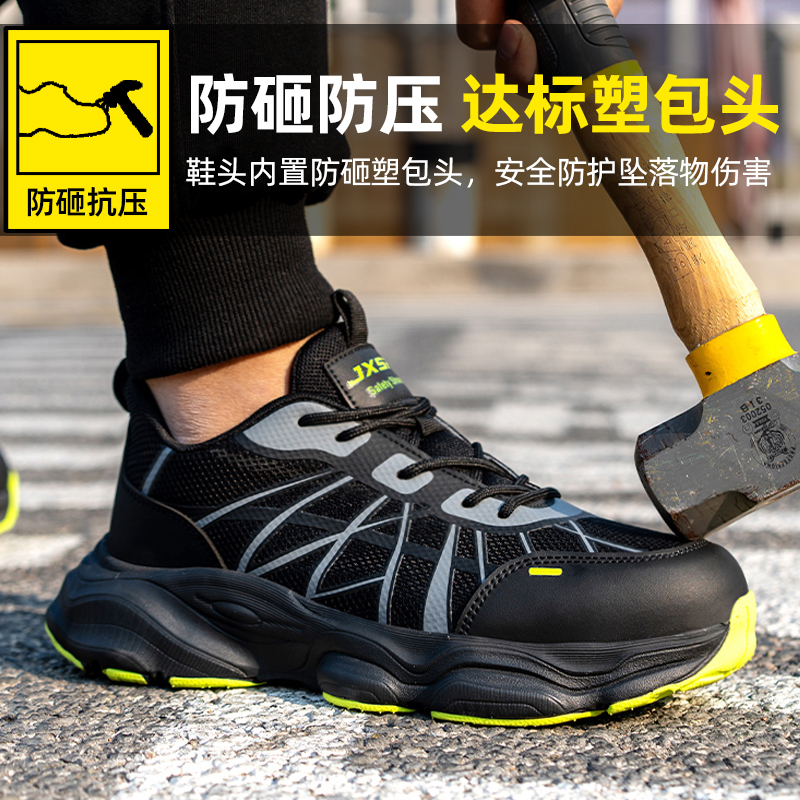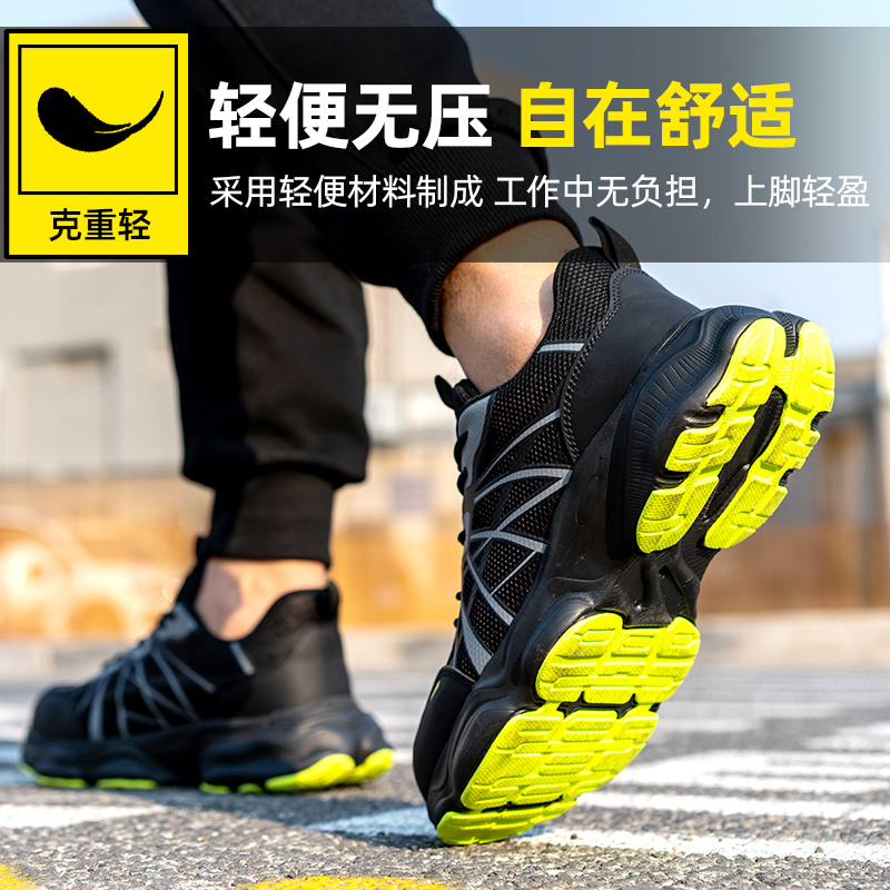 冬季 士钢包头工作鞋 透气轻便工地防砸防刺穿老保带钢板 男款 劳保鞋