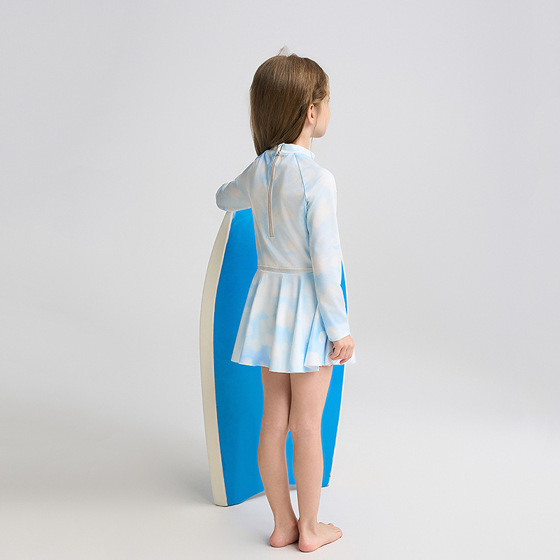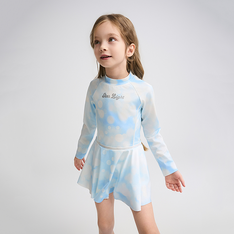 爱慕儿童女童长袖 连体泳衣高弹耐氯不紧绷轻薄海边度假 防晒裙裤