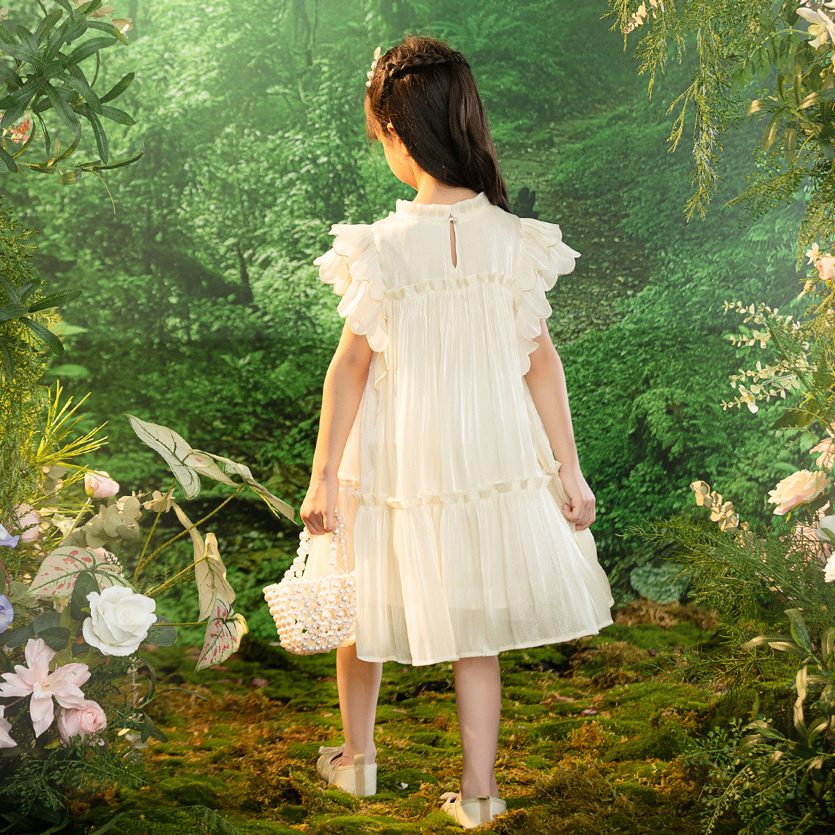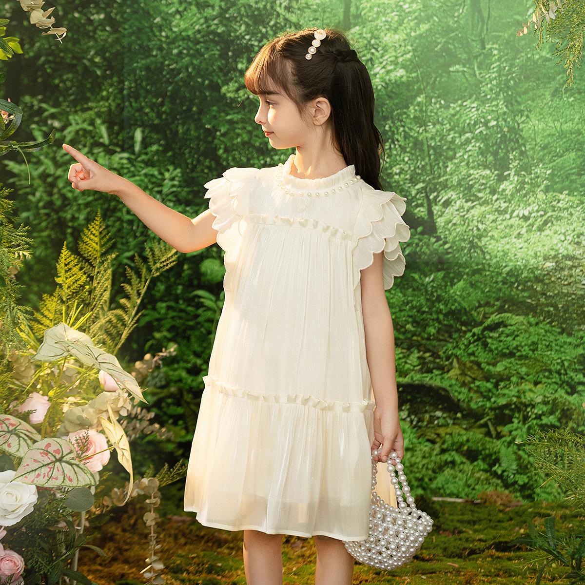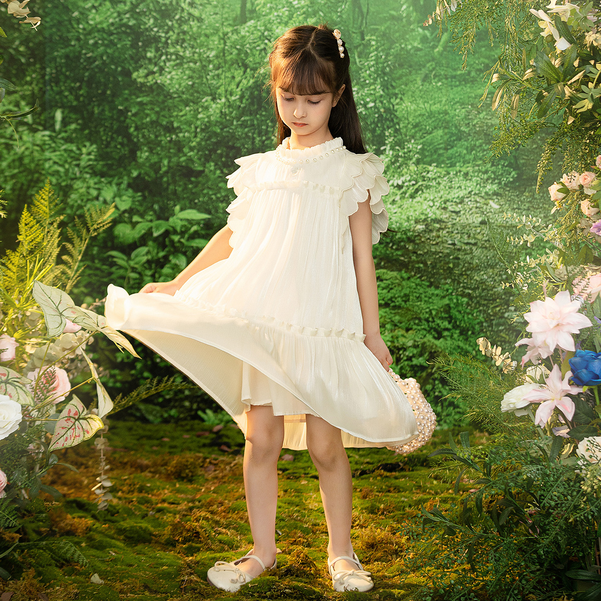 重工V领立体花朵吊带连衣裙女夏2025年新款 设计感纯欲甜辣风短裙