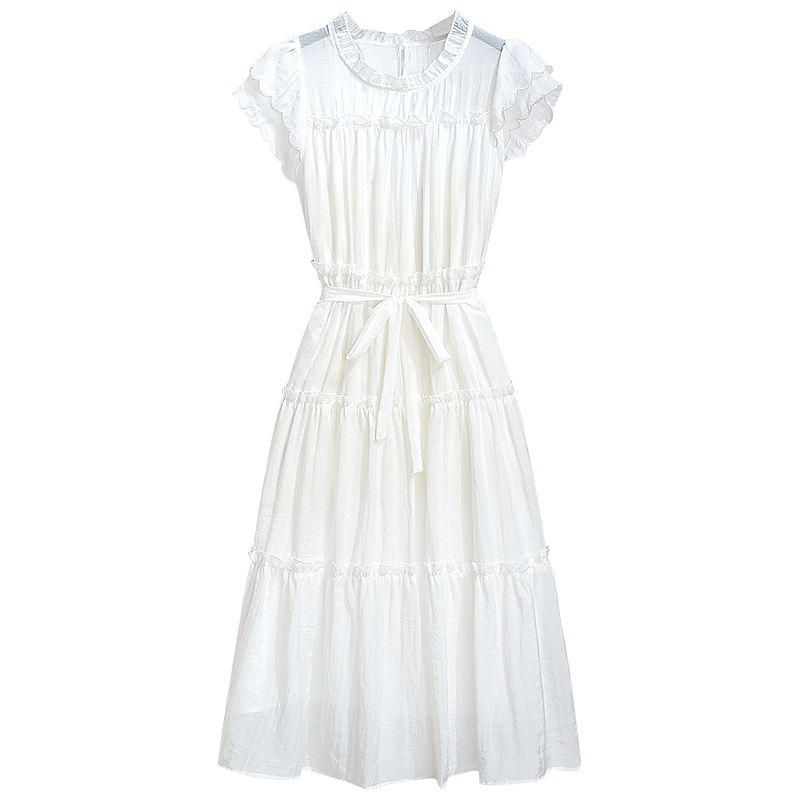 SNIDEL2025春夏新品 连衣裙SWFO252071 优雅蝴蝶结系带荷叶边无袖