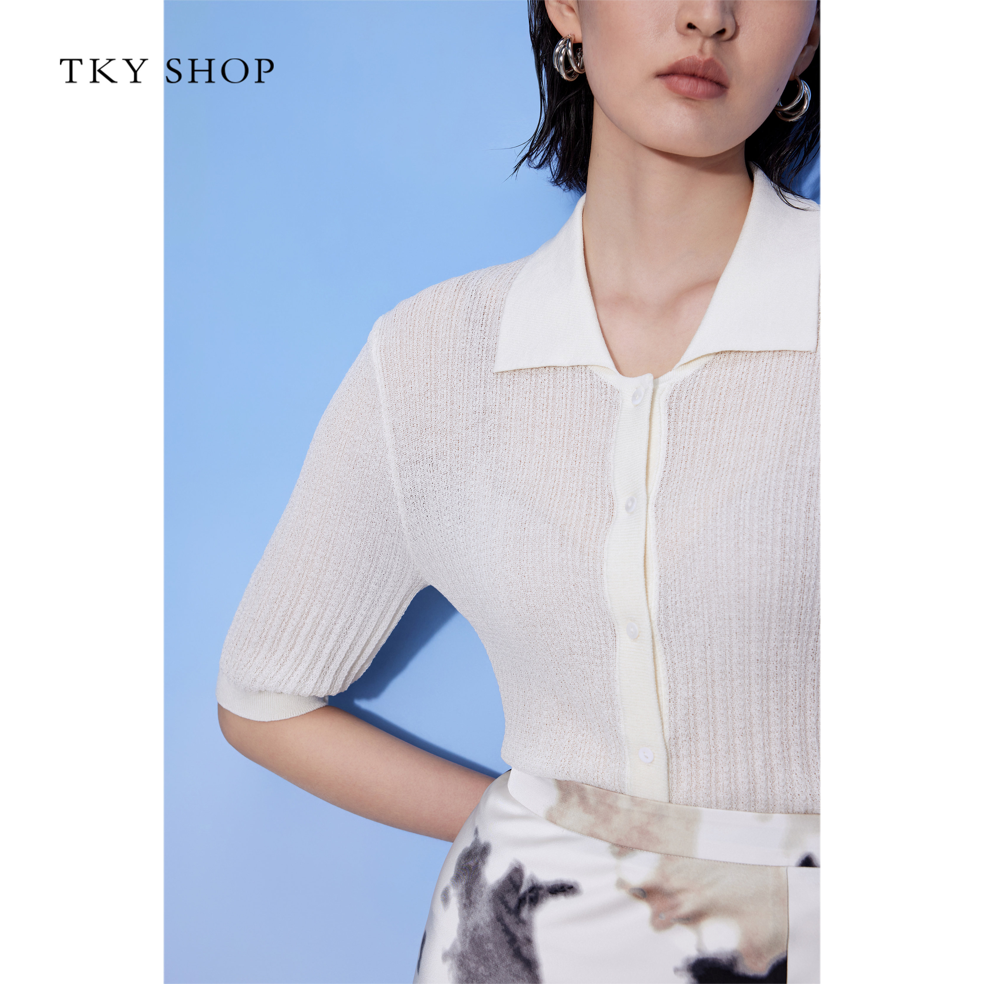SHOP简约polo领薄上衣女2025夏季 针织开衫 新款 显瘦短款 薄 修身 TKY