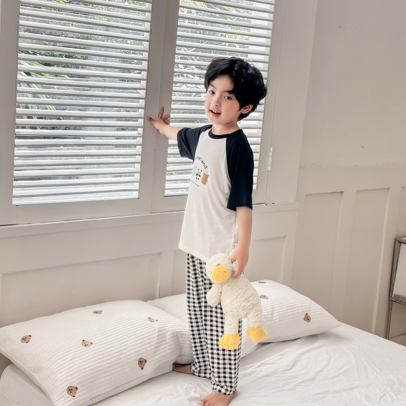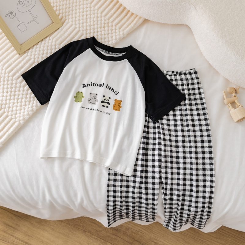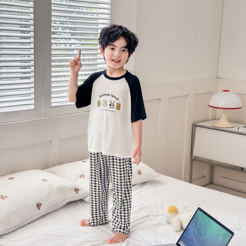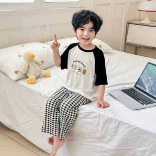 圆领短袖 莫代尔薄款 宽松家居服男童空调服夏 夏季 儿童睡衣2025新款