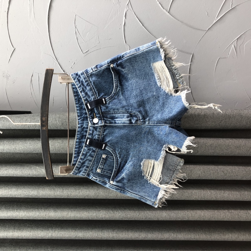 A字毛边阔腿热裤 牛仔短裤 时尚 高腰显瘦破洞休闲2025年夏季 女个性