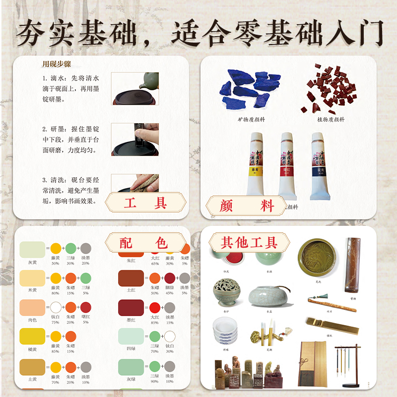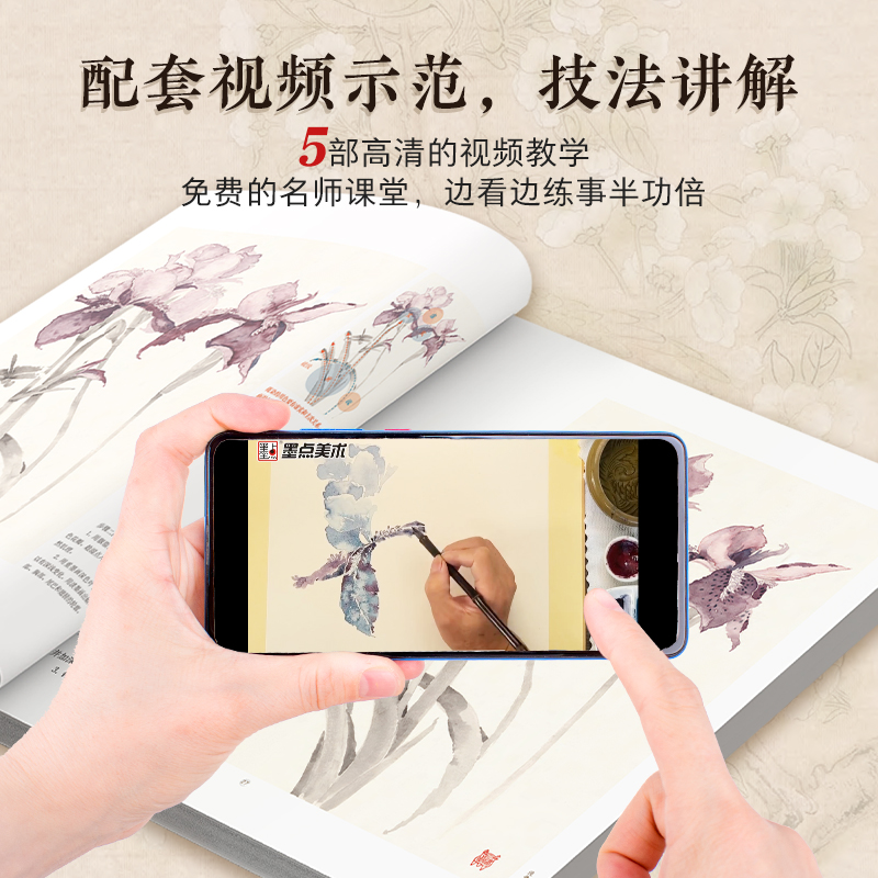 正版 中国画零基础教程书籍临摹画册水墨画集图册范本没骨入门教程 畅销书籍 国画入门技法教程大图大字视频版 墨点美术