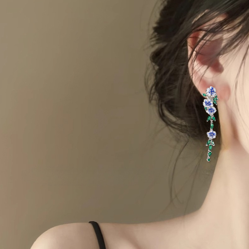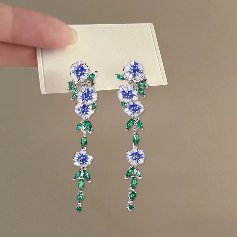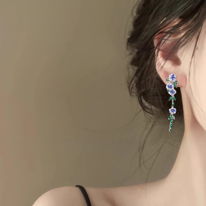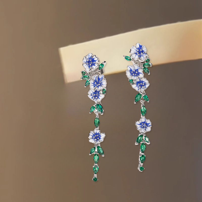 有片花圃 耳坠氛围配饰品拎环 温柔花朵瀑布流苏耳环滴油锆石长款
