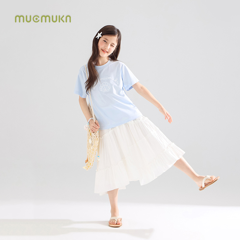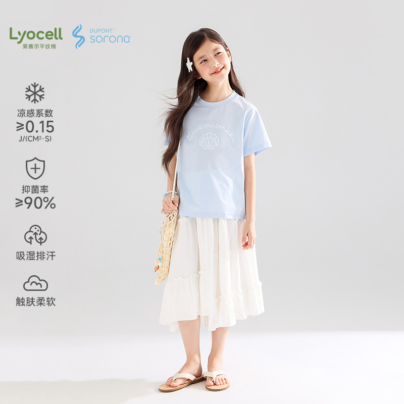 贝壳串珠绣花T恤短袖 sorona莱赛尔凉感棉 女童夏新款 晴夏海风