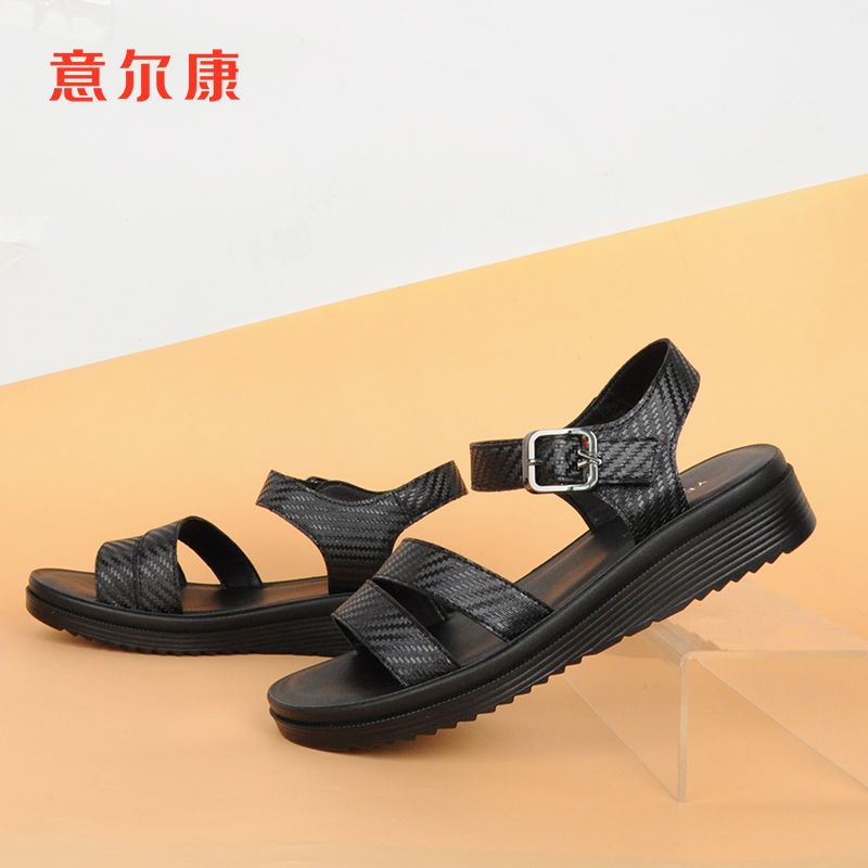 男夏季 真皮厚底爸爸拖鞋 新款 男士 男防滑 牛皮休闲沙滩鞋 红蜻蜓凉鞋
